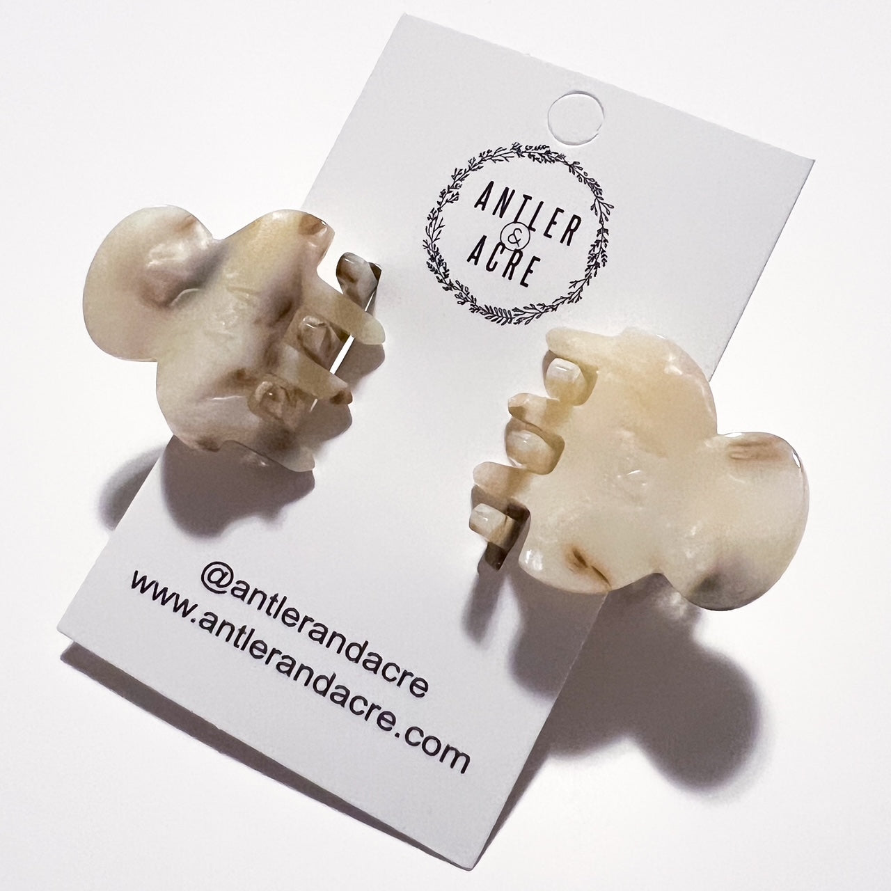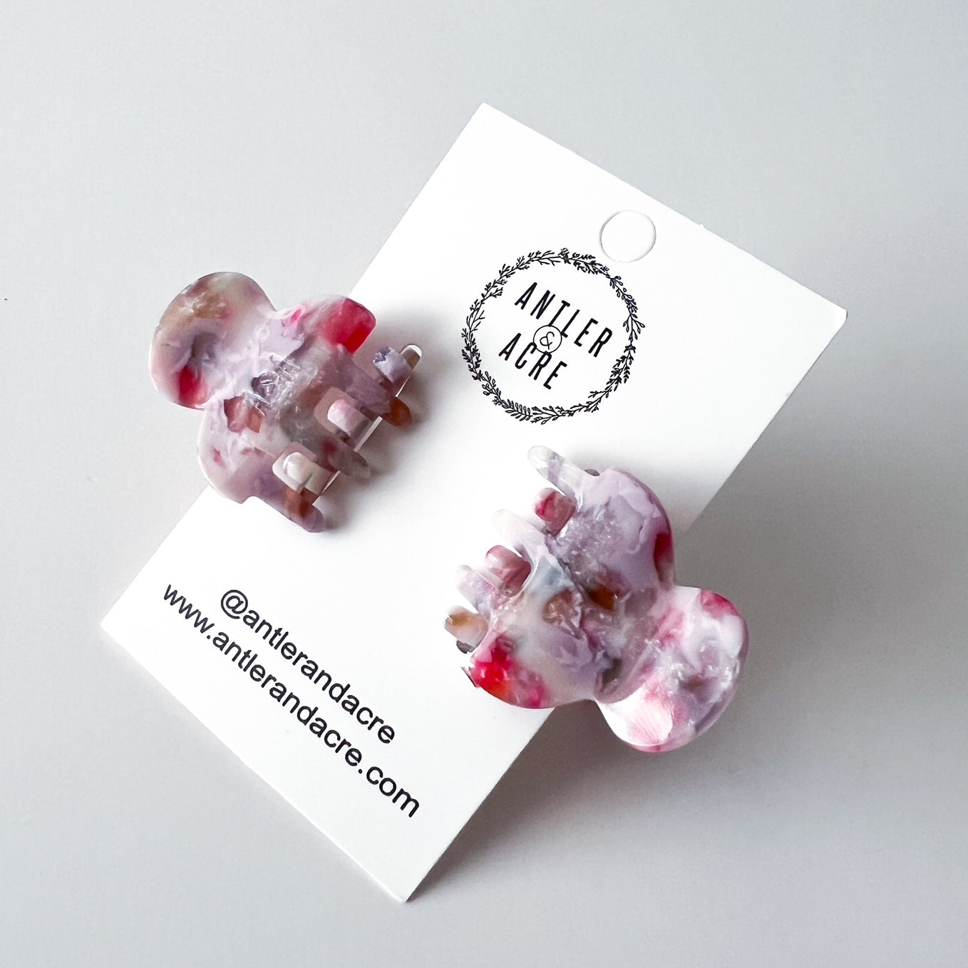 These are our brand new tiny butterfly claw clips! These clips are made of cellulose acetate (just like our other claw clips!) and are way more durable than your average clips. You will notice the difference immediately! (No more broken prongs over here!). These come in a wide selection of colours.