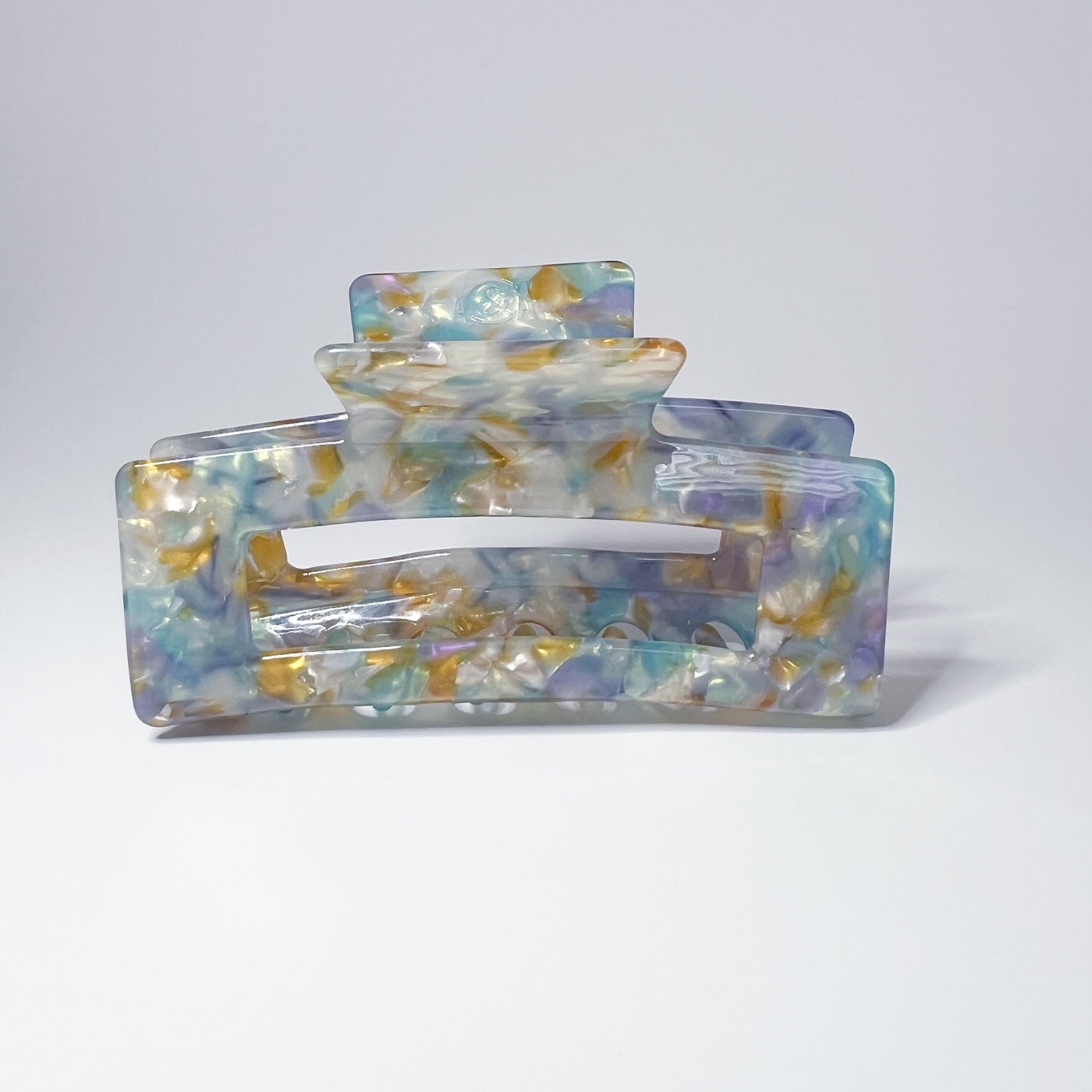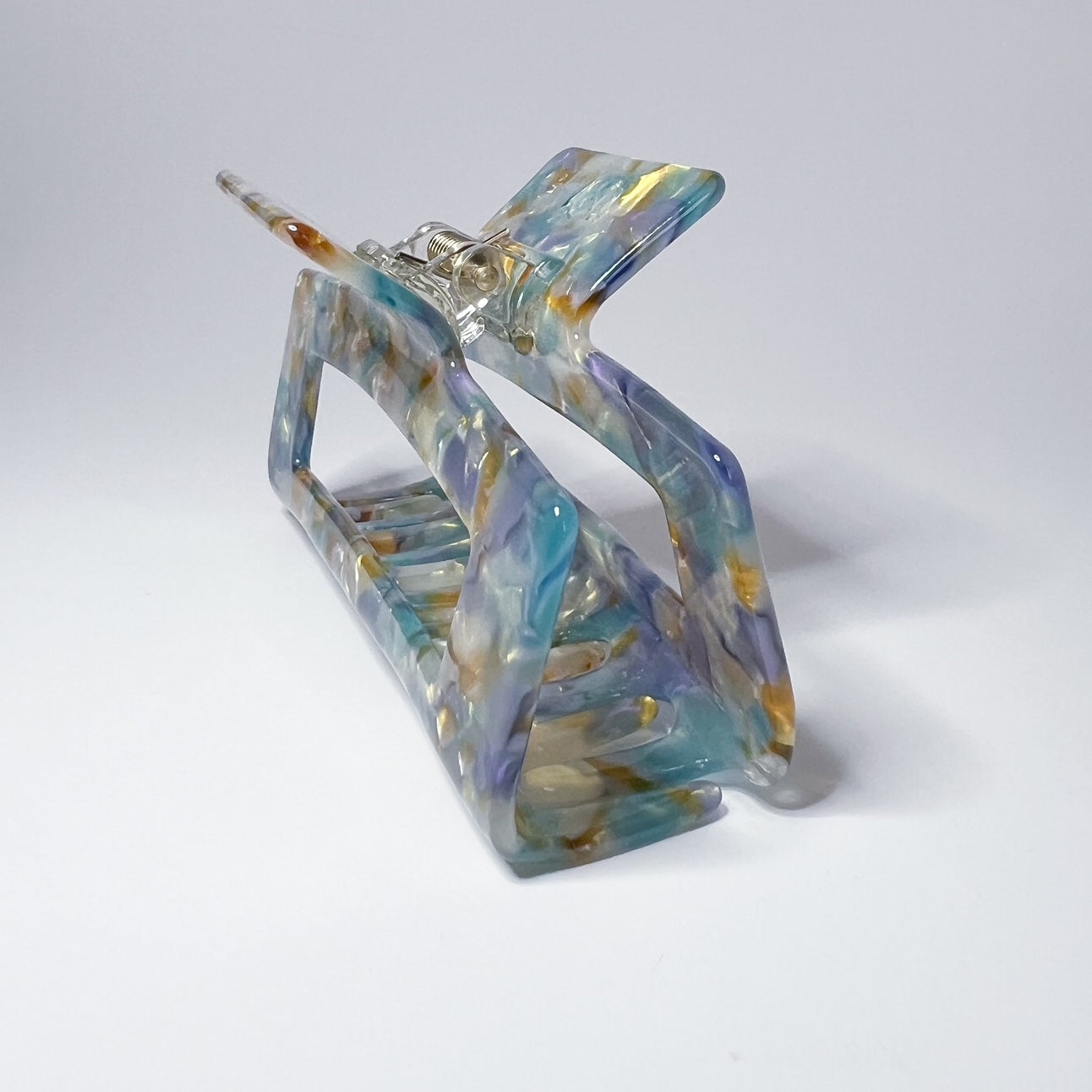 Introducing our brand new Antler & Acre Claw Clips. These clips are made of cellulose acetate and are way more durable than your average claw clip. These are not plastic. You will notice the difference immediately! (No more broken prongs over here!). This one is a Fall Festival! Blue, green, amber, purple.. it is stunning!